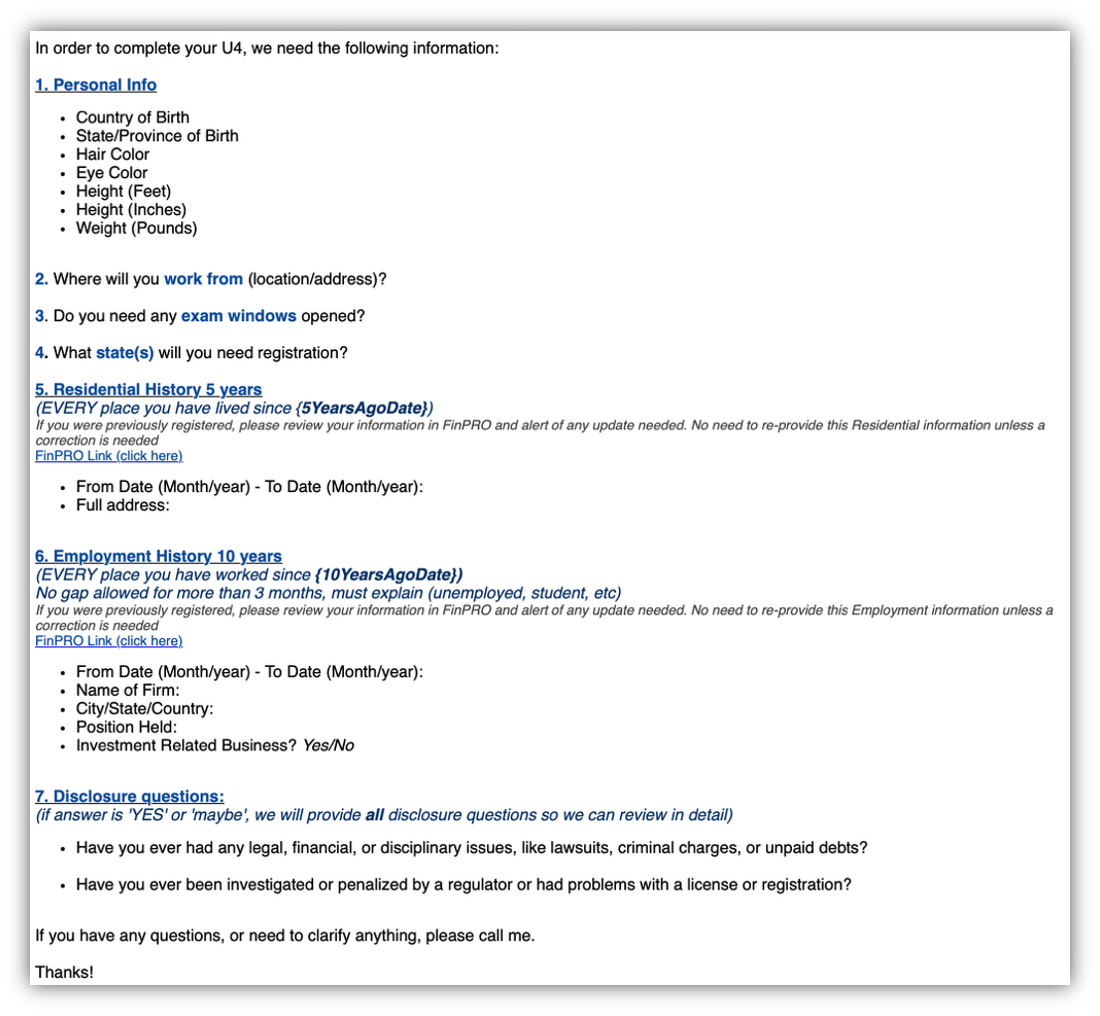 *ii, iii, iv are also sent to Rep in "U4 Info" email